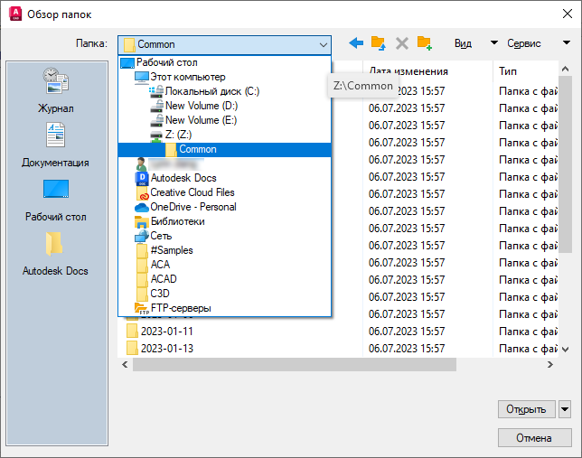 Сначала необходимо указать общее расположение для событий чертежа. Это должна быть внутренняя корпоративная сеть или облачное хранилище.
