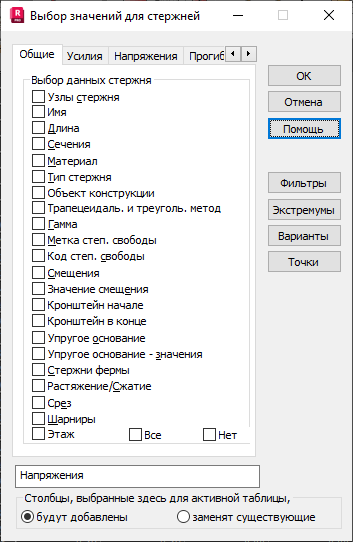 На вкладке «Общие» в диалоговом окне Выбор значения для стержней можно выбрать параметры представления.
