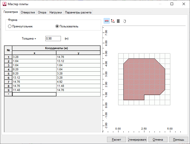 Для определения геометрии плиты в виде прямоугольника или определенной пользователем.