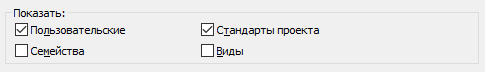 Стандарты проекта. Содержит все параметры, определенные для всего проекта (например, стили линий и штриховок). Рабочие наборы стандартов проекта нельзя переименовывать или удалять.