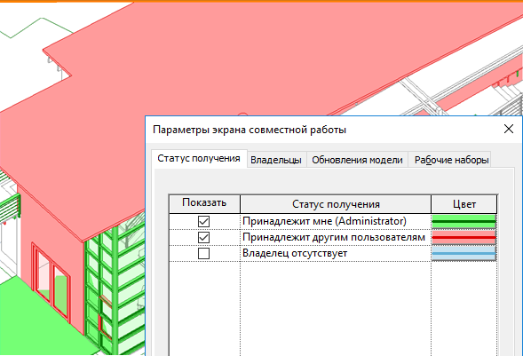3. Для требуемых владельцев или элементов без владельцев выберите "Показать цвета".