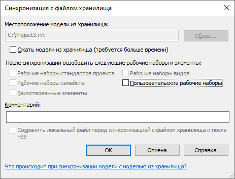 При работе с проектом с совместным доступом используйте команду «Синхронизировать с файлом хранилища», чтобы сохранить локальные изменения в модели из хранилища.