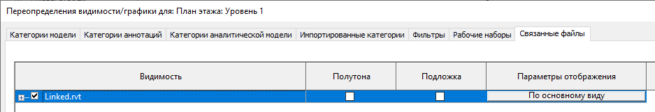 Если требуется, чтобы фильтр и другие параметры переопределения графики, примененные к виду главной модели, были также применены к вложенным и связанным моделям на этом виде, следует принять режим "По основному виду" (действующий по умолчанию).