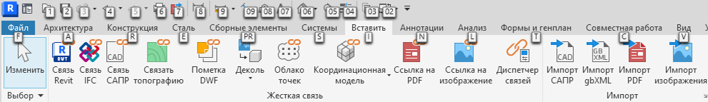 Для отображения клавишных подсказок нажмите клавишу ALT.