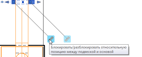 При выборе подвески из базы данных производителя можно использовать элементы управления в области рисования для изменения положения несущего элемента подвески.