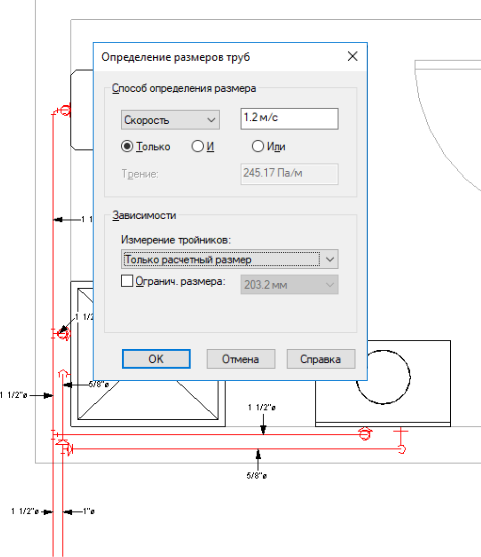 На следующих рисунках показаны результаты применения различных способов определения размеров труб.