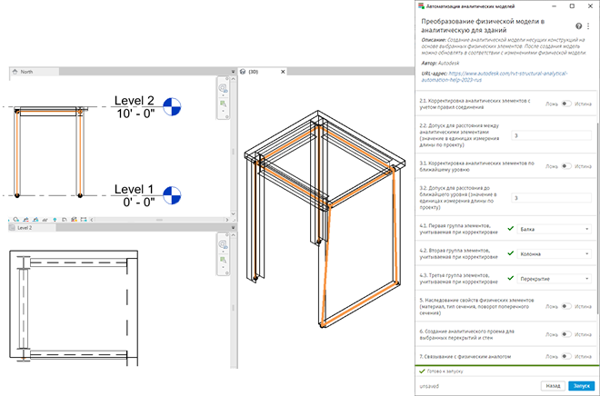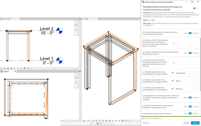 Автоматизируйте создание, связывание элементов и обновление аналитической модели с использованием физической модели в качестве контекста.
