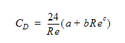 In this equation, a,b and c are user inputs and Re is the fluid Reynolds calculated using: