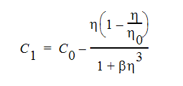 The RNG turbulence model is also an eddy viscosity turbulence model. The turbulent kinetic energy and turbulent dissipation rate are calculated as before. The difference between the two turbulence models lies in the determination of the constants in Table 2. The values for the RNG model are listed in Table 3 with C1 calculated using the expression: