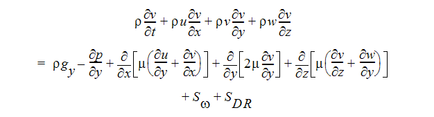 The two source terms in the momentum equations are for rotating coordinates and distributed resistances respectively. The distributed resistance term can be written in general as: