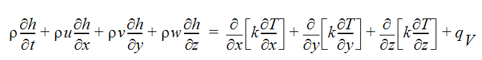 For multi-phase flows, such as steam/water, the energy equation is written in terms of enthalpy: