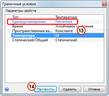 13. Убедитесь, что для параметра Единицы задано значение Фаренгейт. В полеТемпература, введите 64.