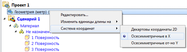 Этот анализ осесимметричен относительно оси X. Мы изменим систему координат в Дереве проекта.