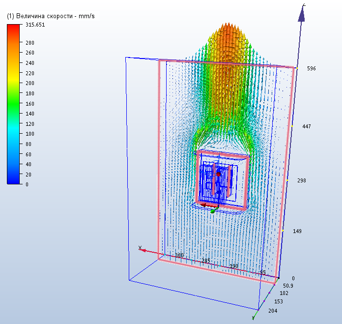 Секущие плоскости отображают результаты для разрезания модели. Используйте их, чтобы получить более полное представление о потоке. Используйте векторы для отображения направления и величины скорости потока.