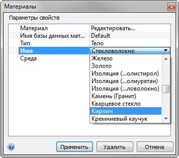 4. В диалоговом окне быстрого редактирования материалов выберите тип материала: