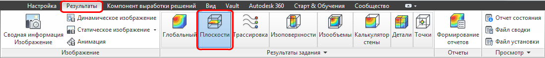 Нажмите Плоскости на вкладке Результаты.