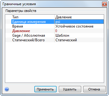4. Оставьте в качестве единицы измерения Пси, а в качестве значения параметра Давление = 0.