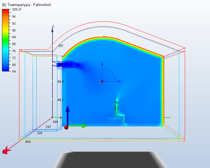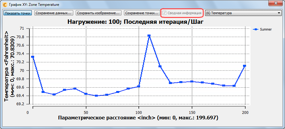 На этом шаге выполняется построение графика температуры по всему залу на верхней границе занимаемой зоны.