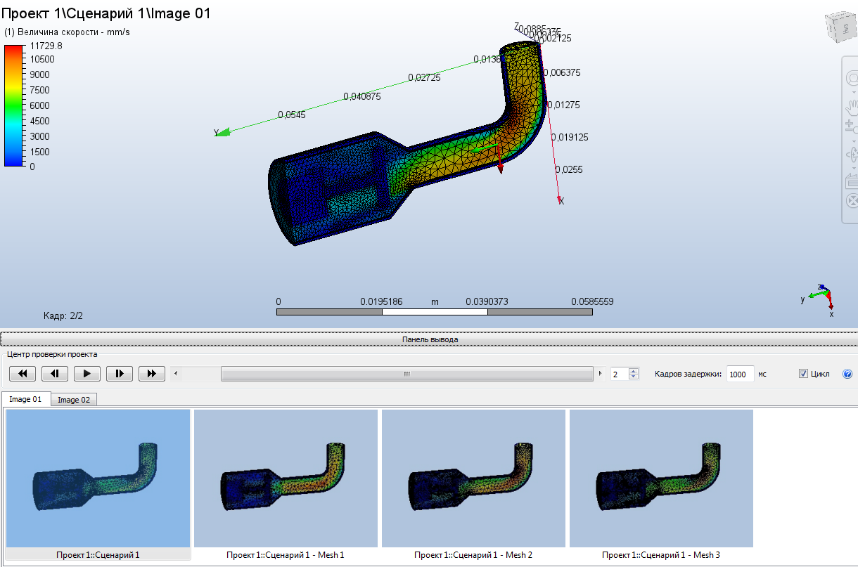 Строка "Вывод" вкладки "Центр просмотра проекта" должна быть активной. Нажмите Изображение 1, чтобы показать сводное изображение сетки: