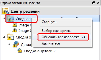 В Центре решений, нажмите правую кнопку мыши на ветке Сводное изображение, и нажмите Обновить все изображения.