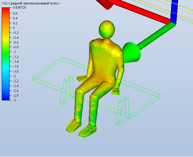 На этом этапе мы будем использовать средний прогнозируемый голос (PMV), чтобы оценить влияние проекта зала и стратегию вентиляции на тепловой комфорт пассажира. Autodesk® CFD расчитывает PMV с использованием нескольких факторов (таких как скорость местного воздушного потока, температура, одежда, скорость обмена веществ, влажность и радиационный теплообмен) чтобы определить, насколько тепло или холодно чувствует себя человек внутри пространства.