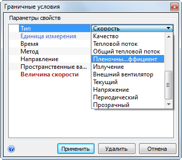 10. В строке Тип выберите Коэффициент теплоотдачи.