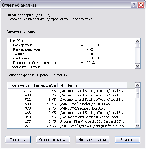 Значительное влияние на работу Autodesk Vault может оказывать фрагментация диска. В большинстве версий Windows имеется средство, которое определяет способ хранения файлов на диске.