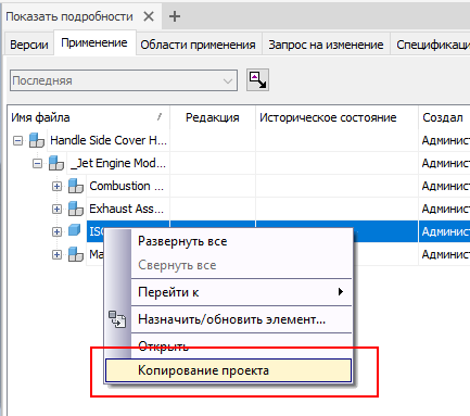 - В Inventor щелкните правой кнопкой мыши файл в обозревателе Vault и выберите «Копировать проект».