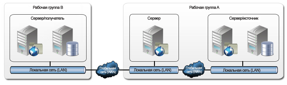 Конечное состояние: две рабочих группы, рабочая группа А является источником, рабочая группа B — подписчиком