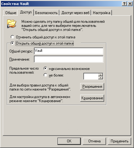 - В диалоговом окне «Свойства» выберите «Открыть общий доступ к этой папке».