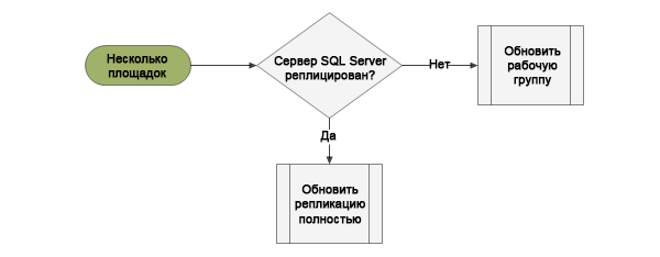 В рабочей группе начать обновление можно с любого сервера Vault. На выбранном узле также будет осуществляться перенос базы данных SQL. Для всех других узлов сервер SQL будет недоступен до тех пор, пока они не будут перенесены в те же программу, версию и пакет обновления.