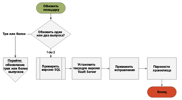 Следуйте инструкциям в данном разделе, если необходимо обновить программу Vault Server, которая на три или более версий старше, чем версия, до которой выполняется обновление.