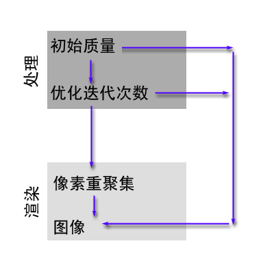 光能传递解决方案的各个阶段为“初始质量”、“细化”和“重聚集”。