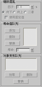 以下选项可以指定繁殖的每一代粒子的备选寿命值的列表。繁殖的粒子使用这些寿命,而不使用在“粒子生成”卷展栏的“寿命”微调器中为原粒子指定的寿命。