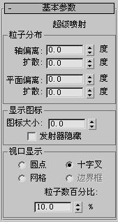 超级喷射发射受控制的粒子喷射。此粒子系统与简单的喷射粒子系统类似,只是增加了所有新型粒子系统提供的功能。