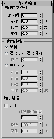 此卷展栏上的选项可以影响粒子的旋转,提供运动模糊效果,并控制粒子间碰撞。