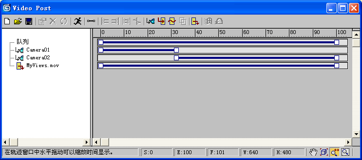 - 选择“图像输出事件”并拖动范围栏的右端以匹配队列中的总帧数。