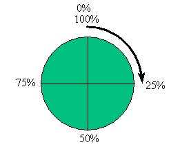 以环绕方式更改颜色,围绕“镜头效果”特征顺时针旋转。如果在圆上标出“北”、“东”、“南”和“西”,则这些点分别代表渐变的 0%、25%、50% 和 75% 标记。