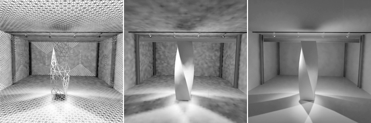 右:光能传递网格中同时存储直接灯光和间接灯光(阴影通常非常粗糙)。