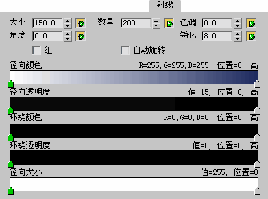 可以控制“镜头效果光斑”对话框中“射线”面板中的射线参数。