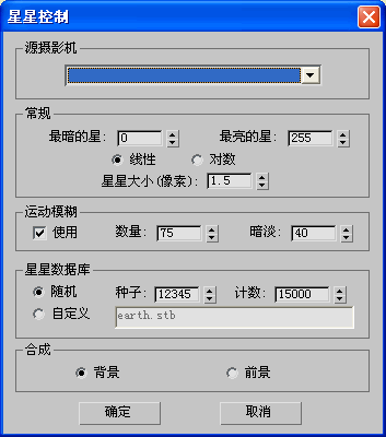 “星空”过滤器使用可选运动模糊生成具有真实感的星空。“星空”过滤器需要摄影机视图。任一星运动都是摄影机运动的结果。