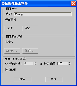 “图像输出”事件将执行 Video Post 队列的结果发送至文件或设备。如果希望保存最终视频,则必须将“图像输出”事件添加至队列的末尾。否则,结果仅在渲染帧窗口中显示。“图像输出”事件的范围栏必须包括要输出的帧的整个范围。
