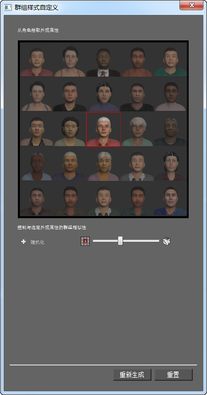 - 单击可使用表中显示的角色和布料属性,并按您您的不同选择重新生成选定人员。
