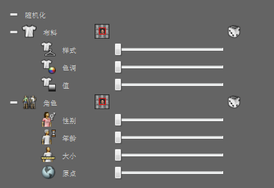 单击 +(加号)图标可展开该区域并针对布料或角色显示更具体的随机选项。