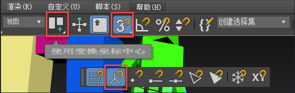 - 双击以选择整个手指(所有指节)。使用“使用中心”弹出按钮工具栏按钮中的使用变换坐标中心,并在启用“捕捉切换”(S) 的情况下使用捕捉工具栏中的“捕捉到轴点”,将手指与虚拟轴点对齐。