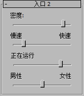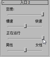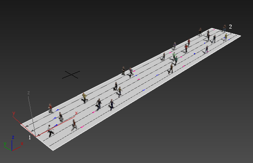 即可播放动画。 “入口 1”中右侧的所有行人行走速度都很慢。“入口 2”中左侧的行人奔跑的速度各不相同。