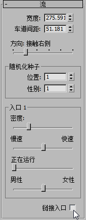 主“流”卷展栏上的标签更改为指示该组控制“入口 1”。现在,“入口 2”卷展栏上的控件也可用。