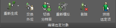 重新生成 [重新生成选定对象] 要在模拟后随机改变一人或多人的外观,请先选中此人,然后单击该按钮。“重新生成选定对象”将会更改所选群组成员的身体网格和布料材质。 这对于在渲染之前处理彼此之间太过相似或是以其他方式凸显出来的人很有帮助。