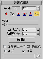 当 Biped 的手臂或者腿(手和脚)的关键点处于当前位置时,IK 混合值控件被激活。