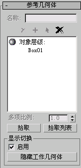在“参考几何体”卷展栏上,可以创建已命名的子对象选择集,并且使其与高分辨率的几何体相关联。